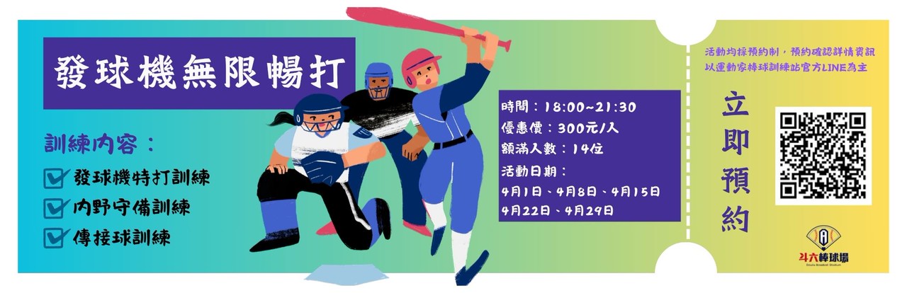 時間-18:00-21:30,3.5小時發球機不限時間特打。